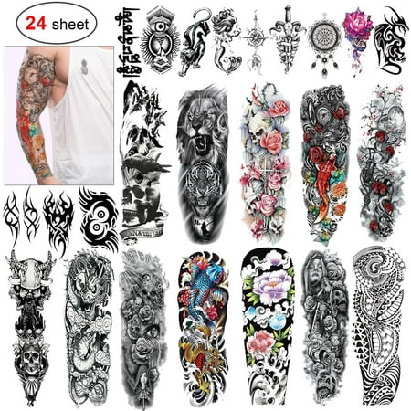 24 Sheets Large Temporary Tattoos Full Arm And Half Arm Tattoo Sleeves Temporary Sleeve Tattoos Large Fake Body Art Arm Chest Shoulder Tattoo Black Tattoo Body Stickers For Man Women Walmart Canada